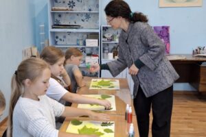 Арт-затея «Лето в ладошках» ждала ребят на летней площадке. Рисование оттиском через листья – это творческий процесс, в котором используются
