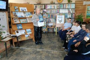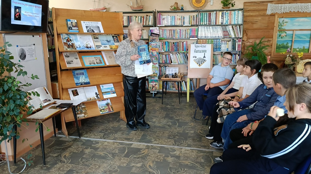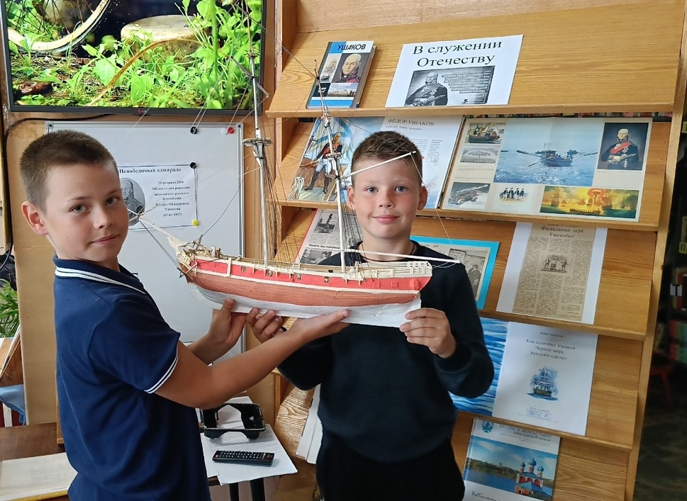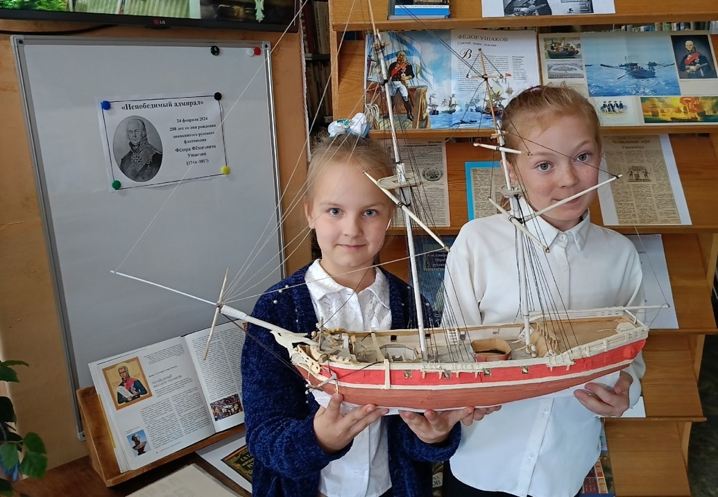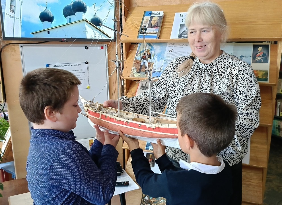 В библиотеке для учеников 3 класса провели краеведческие час «Ушаков — Святой воин земляк», в ходе встречи прозвучал рассказ о биографии и подвиге великого флотоводца. Представили книги с выставки «В служению Отечеству». А затем участники встречи посмотрели документальный фильм «Адмирал Ушаков. Восхождение».