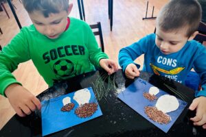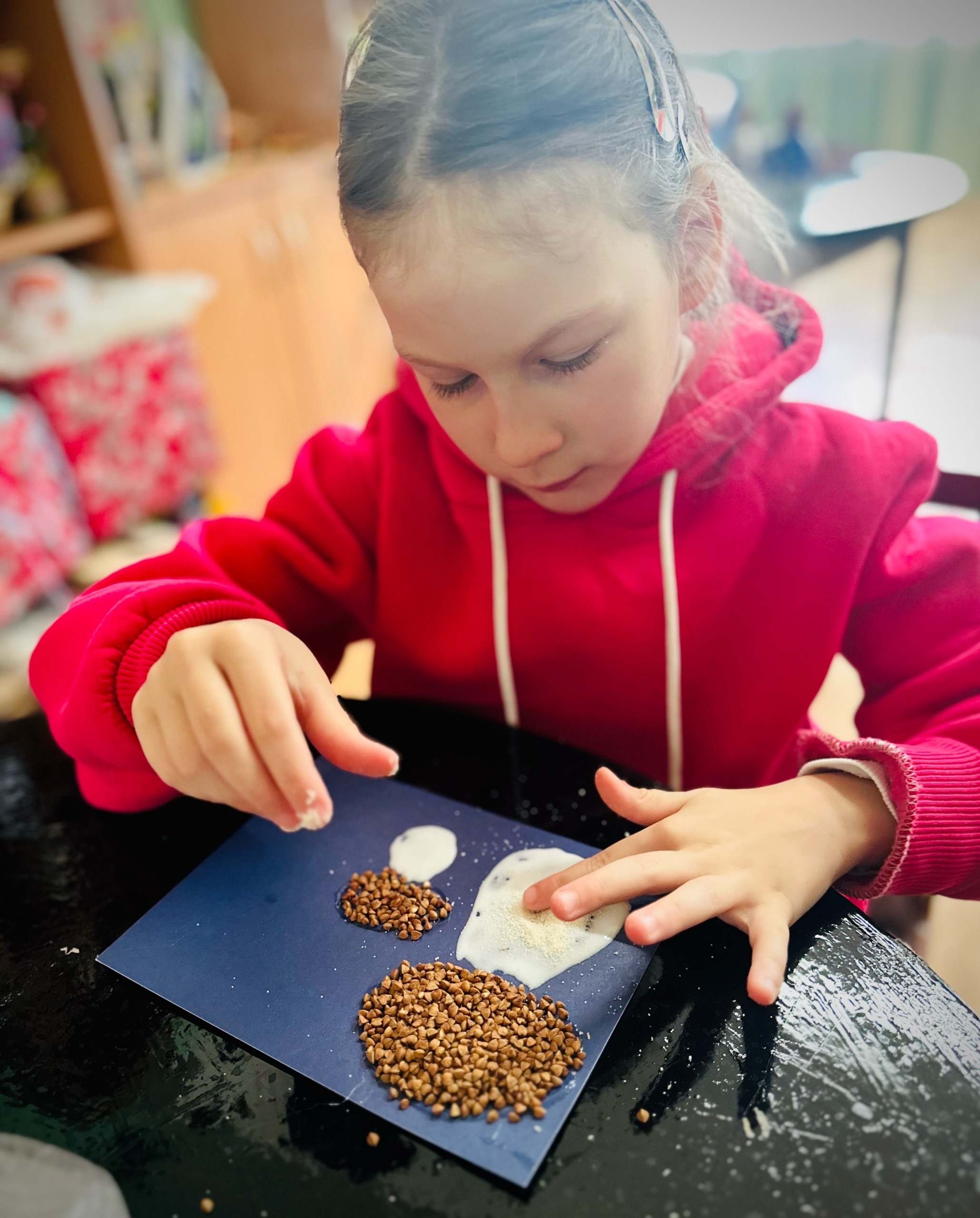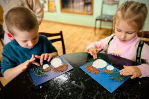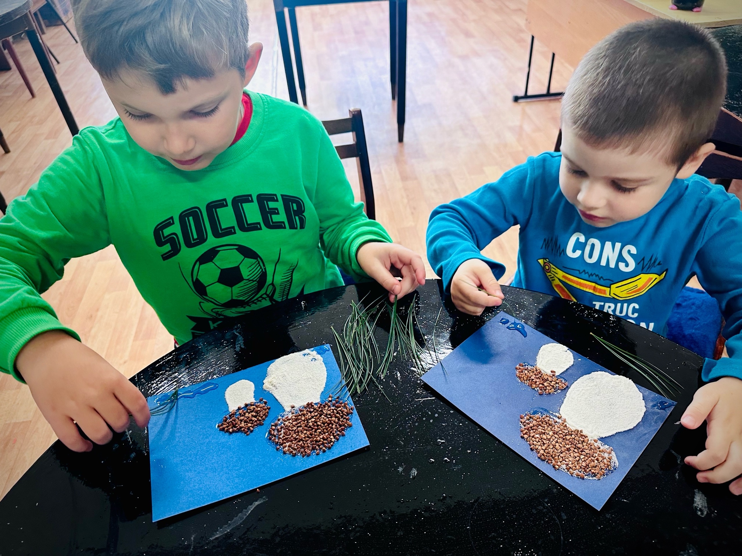 После познавательной беседы дети с удовольствием приступили к созданию ярких аппликаций с изображением белого гриба — настоящего символа русского леса.