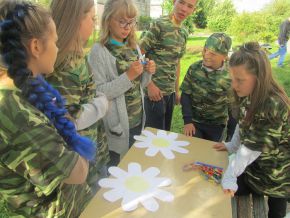 Первый день ребята посвятили дворовым играм. Захватив с собой спортивные атрибуты, они отправились на летнюю игровую площадку, на которой вместе с детьми разных возрастов устроили «Игровой батл». Второй день лагеря был посвящен патриотическому воспитанию. В библиотеке ребят познакомили с обучением кадетов в суворовских военных и нахимовских военно-морских училищ. Затем они приняли участие в творческом конкурсе по разработке листовок и буклетов «Мир против террора».
