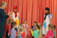 Варежки попросили ребят не терять свои рукавички: сушить их и бережно к ним относиться. Затем малыши получили сладкие подарки от деда Мороза.