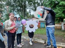 На открытых площадках поселка юные участники волонтерского отряда «Бухта радости» распространяли буклеты и дарили детям разноцветные воздушные шарики.