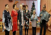 На предновогодний праздник у красавицы Елочки собрались волонтеры «серебряного» возраста, участницы Дюдьковского хора «Горница» и Октябрьского ансамбля народной песни «Селяночка».