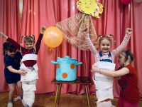 Сначала в доме устроили большую стирку и убрали все игрушки по местам. Маленькие хозяюшки приготовили в большой кастрюле вкусный суп, напекли блины и пиццу. Юные портнихи позаботились о праздничном наряде. Все дела переделали, можно и пошалить пока мамы нет!
